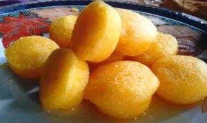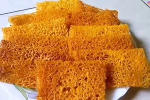 Camilan tradisional berwarna kuning keemasan yang terbuat dari tepung dan telur.